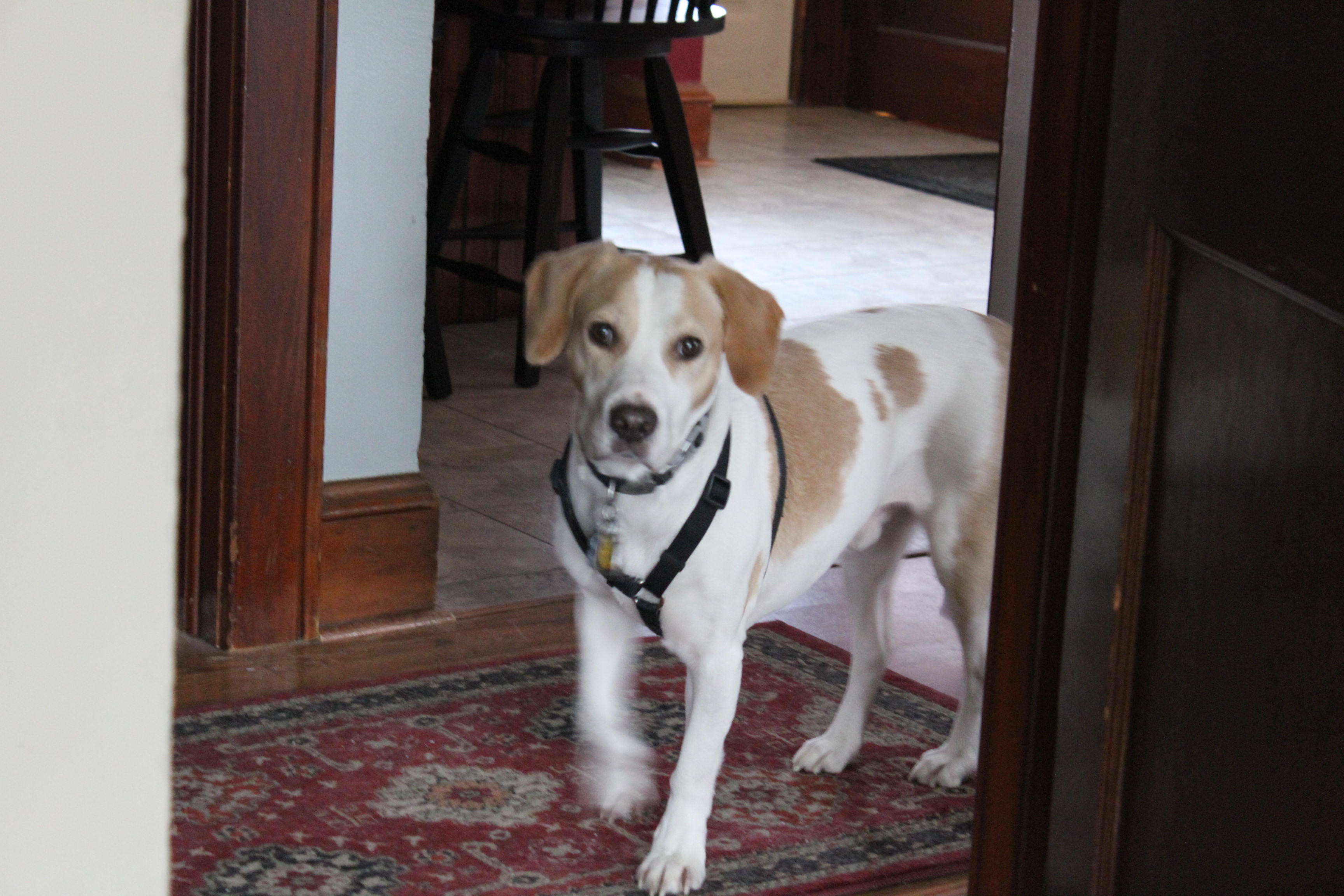 Since Barney is basically our four-legged son, we were very nervous about leaving him there. We rescued Barney from a shelter in 2007. He is part Beagle & Lab. Thankfully, he doesn’t bark like a Beagle, but he puts his nose to the ground and tracks like one. So, any time that he can find an opening, he is off hunting the scents. So, this was our concern, him getting out somewhere.