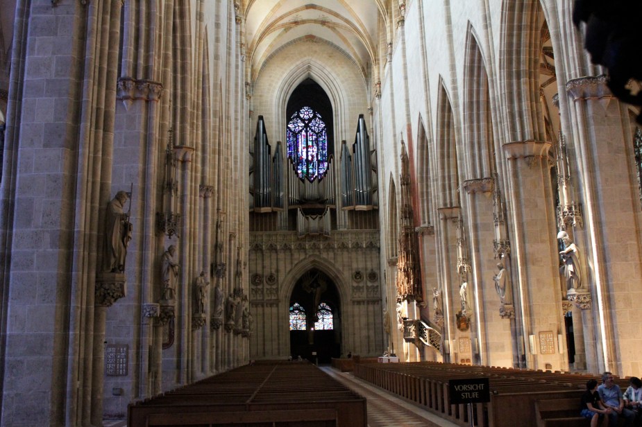 Ulm is a beautiful city that sits on the banks of the Danube River. In the city of Ulm is the tallest church spire in the world (530 feet) that started construction in the 14th Century, and its serenity is so peaceful and breath-taking. Since Amanda worked during the day, I walked the streets with camera and map in hand doing my tourist duties. At the church, I paid my 4 Euro to walk up the 750 steps to the top. The steps were a spiral staircase that was just big enough for one person. This was fine until someone (or a group) was coming down as I was going up. After about a third of the way, I decided this was crazy so I walked back down. Little disappointed I didn’t continue, but maybe next time 😉