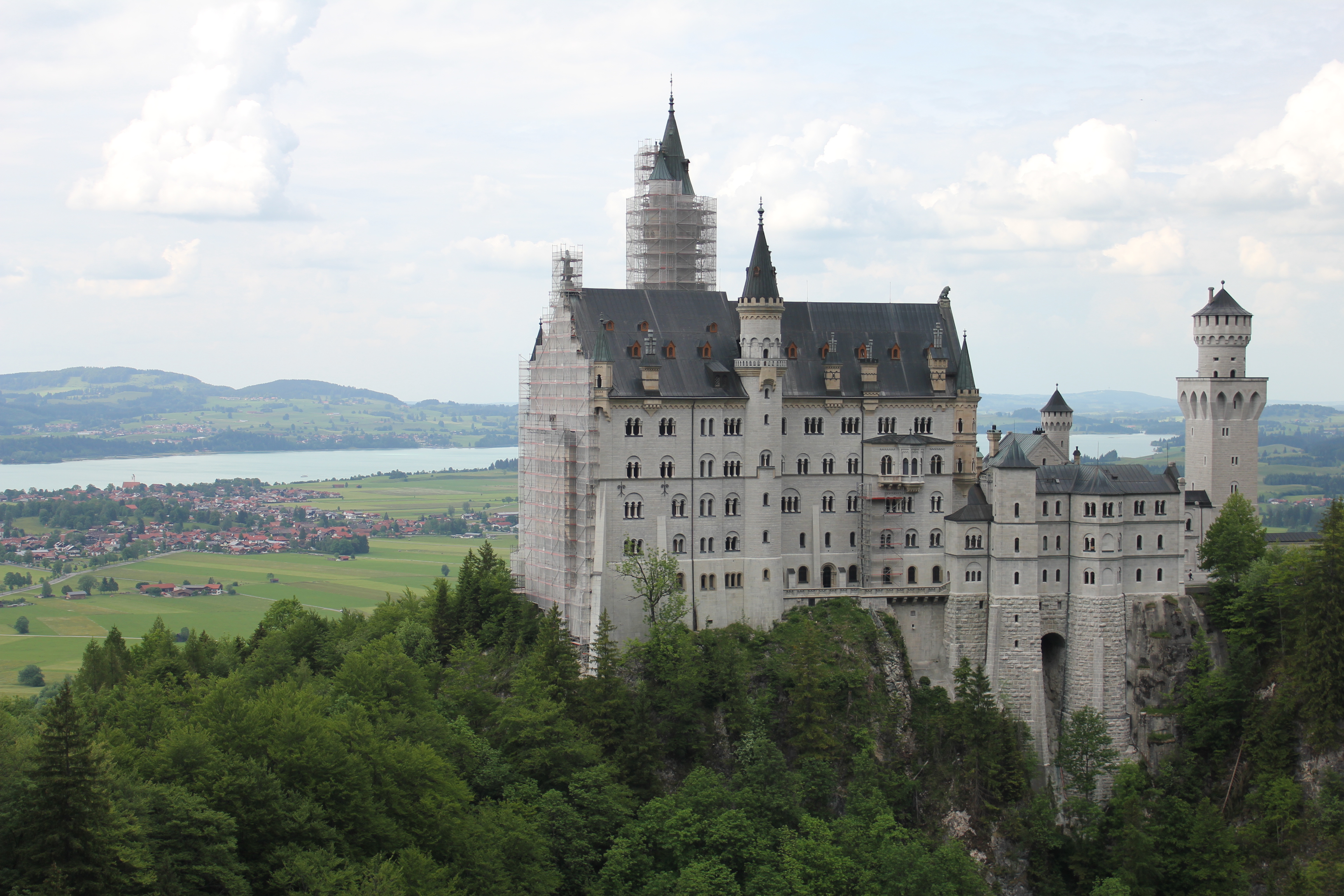 Neuschwanstein is absolutely stunning. When one thinks of what a fairytale castle should look like, this is it. So much so, that this castle was used as the model of Sleeping Beauty’s Castle at the Disney theme parks, and we all know how iconic that is with Disney! It truly is a magical site to see this white castle, standing on the mountain top with the Alps as its backdrop, and flat farmland in its foreground.