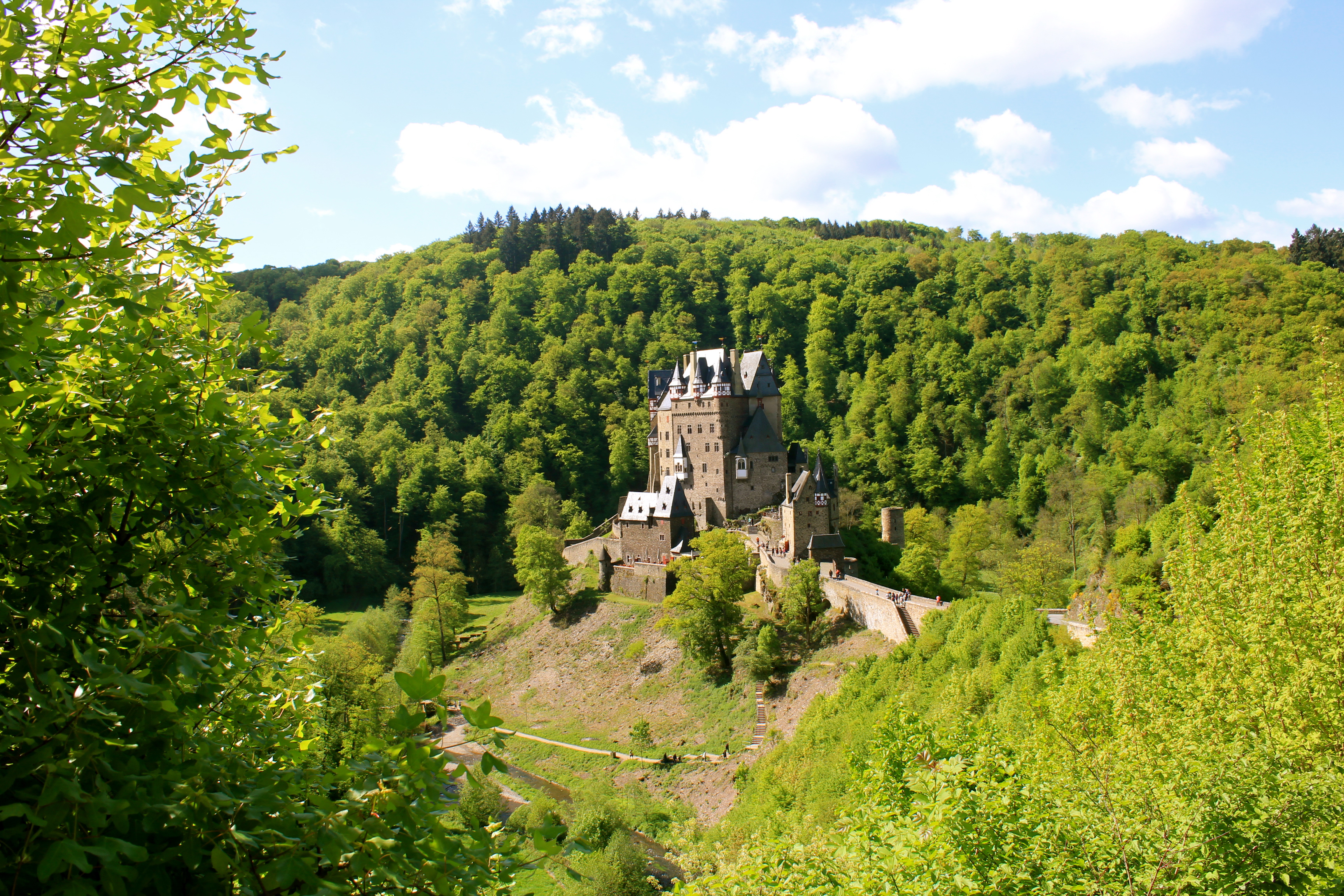 What is unique about Eltz, other than its Medieval charm, is that instead of sitting high on top of a hill, it sits perched on a small hill inside of a valley. It is a very compact castle, but you can see how its size helped keep it standing for all these centuries.