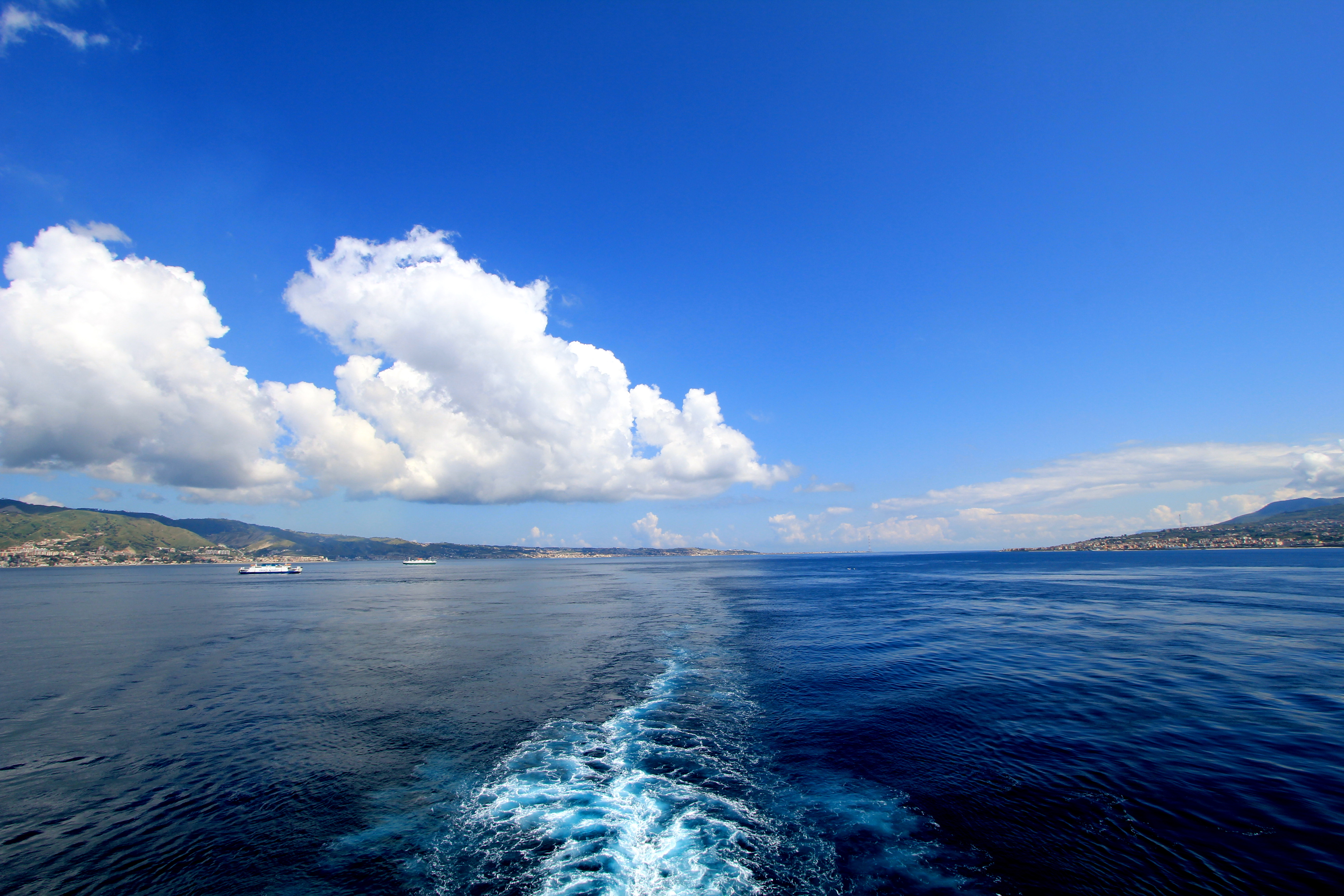 Traveling from Rome to Italy, we passed through the Straight of Messina. Below we have the island of Sicily on the left and Italy on the right.