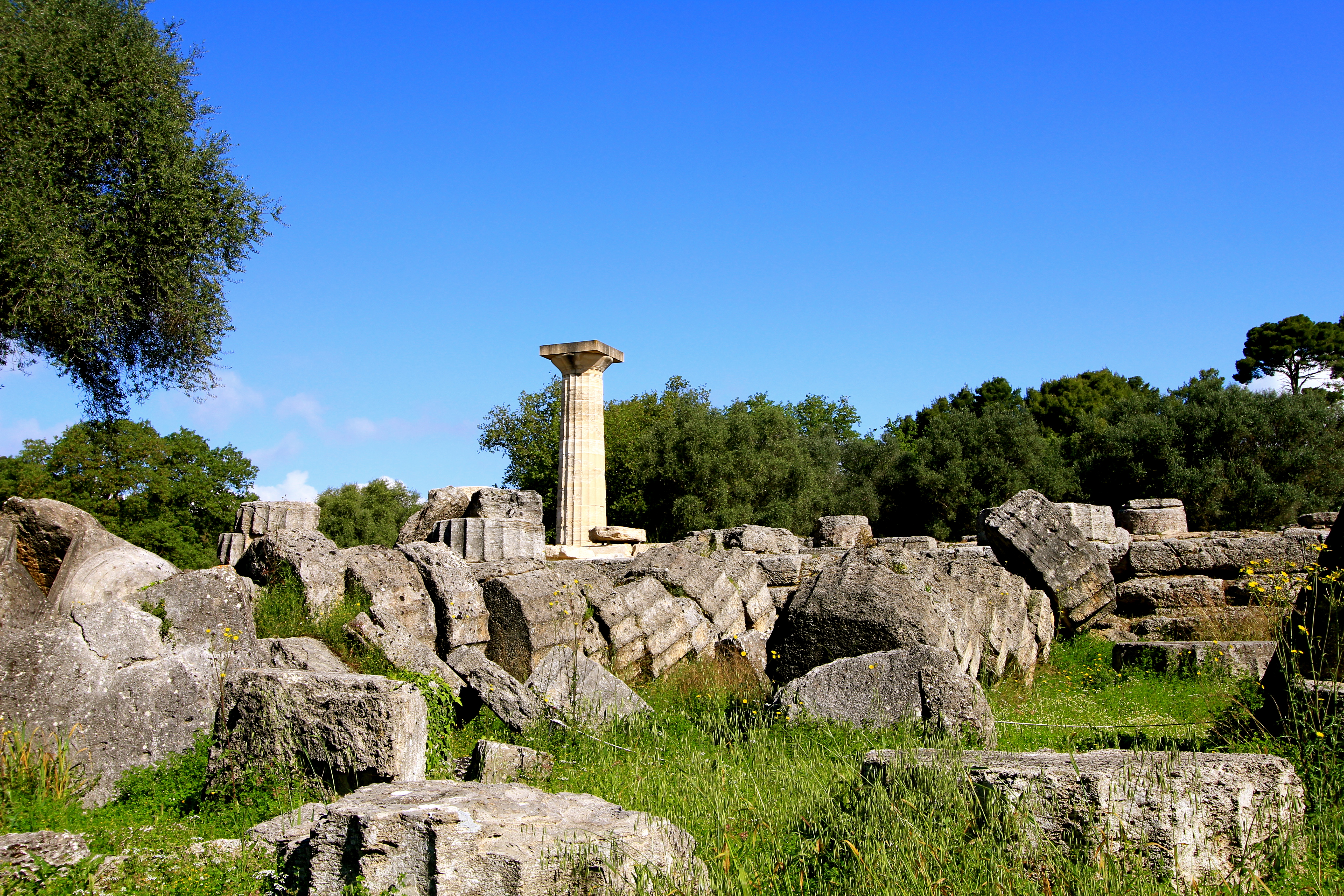 The column standing is what remains of the “Temple of Zeus”, which was built in 400 BC. An earthquake destroyed the temple.