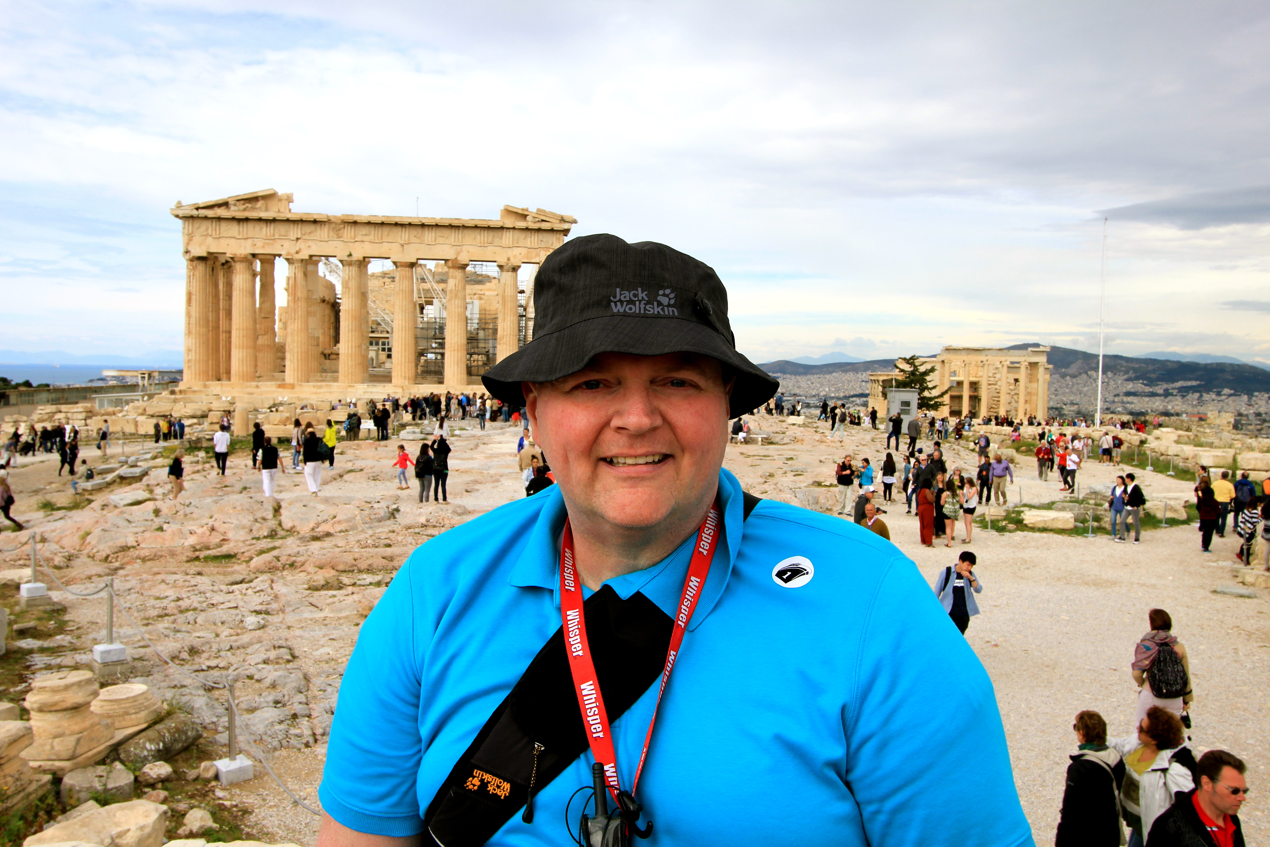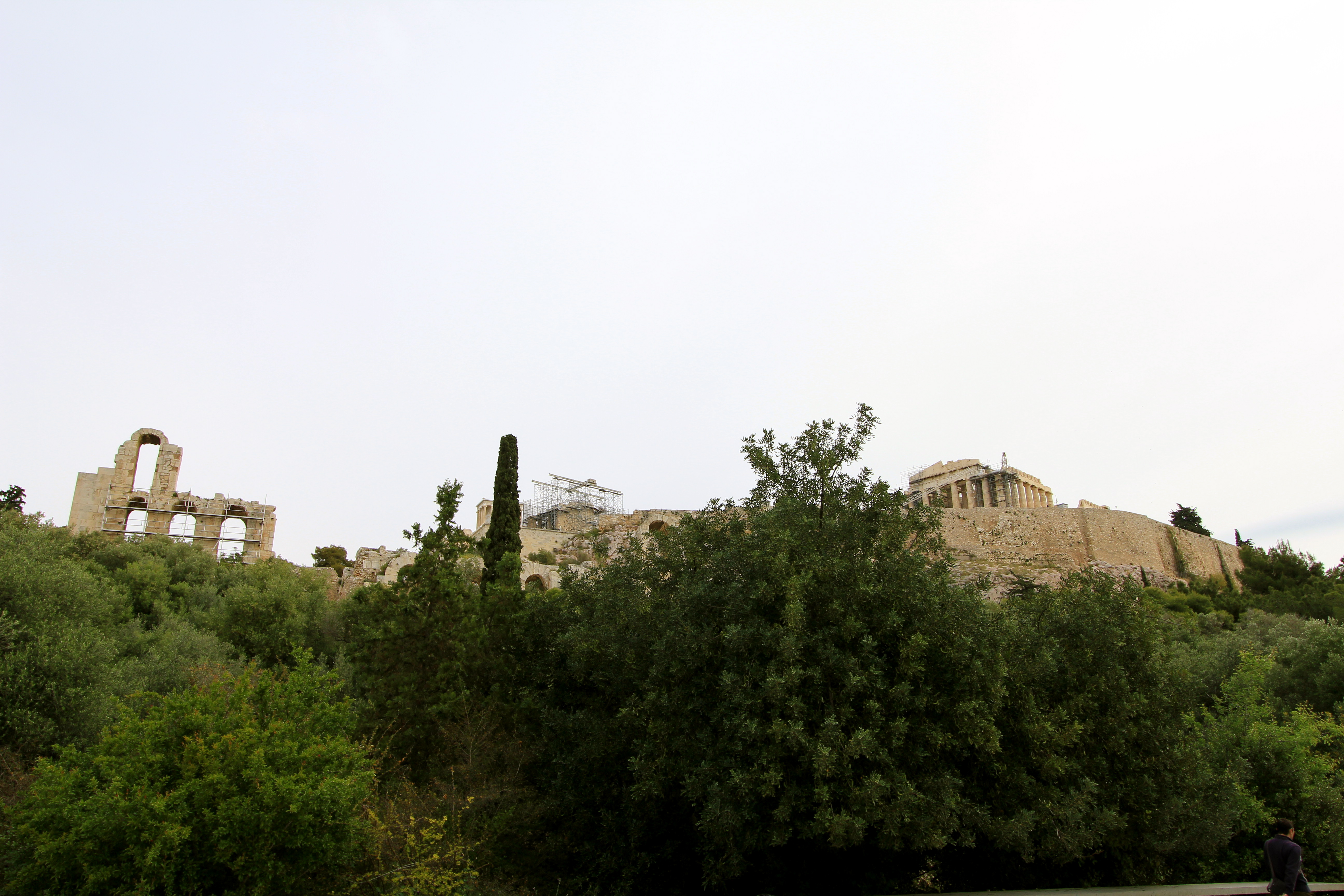 Getting dropped off at the bottom of the Acropolis and looking upward. I can only imagine what it looked like 3000 years ago, as a total white structure.