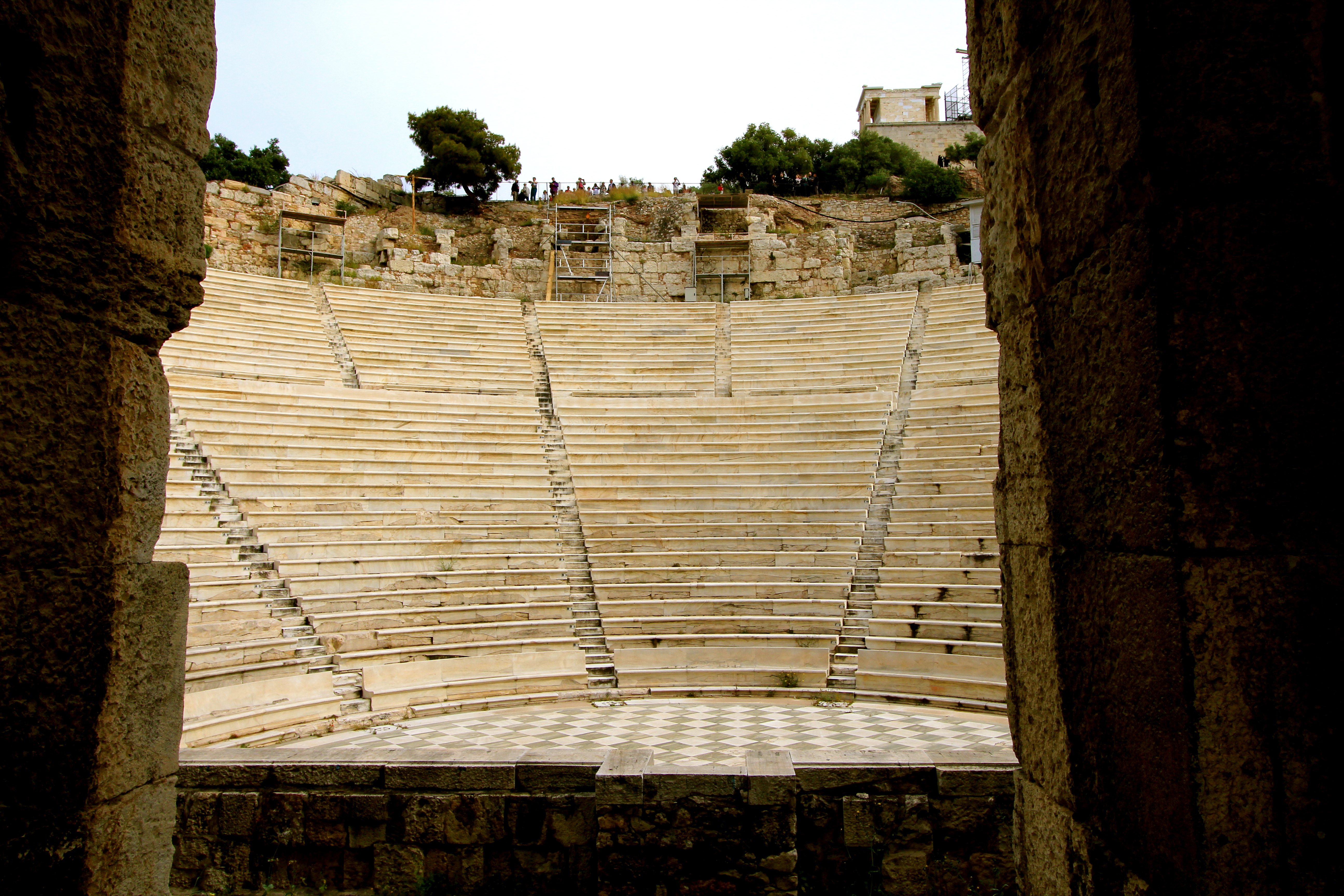 IMG_0162Just below the Acropolis is the Theatre of Dionysus Eleuthereus, and amphitheater that can seat 17,000 people. It is amazing the think that the famous Greek Philosophers like Socrates, Plato, & Aristotle would speak and hold court here. As we climbed higher, we could see a better view of the Amphitheater.