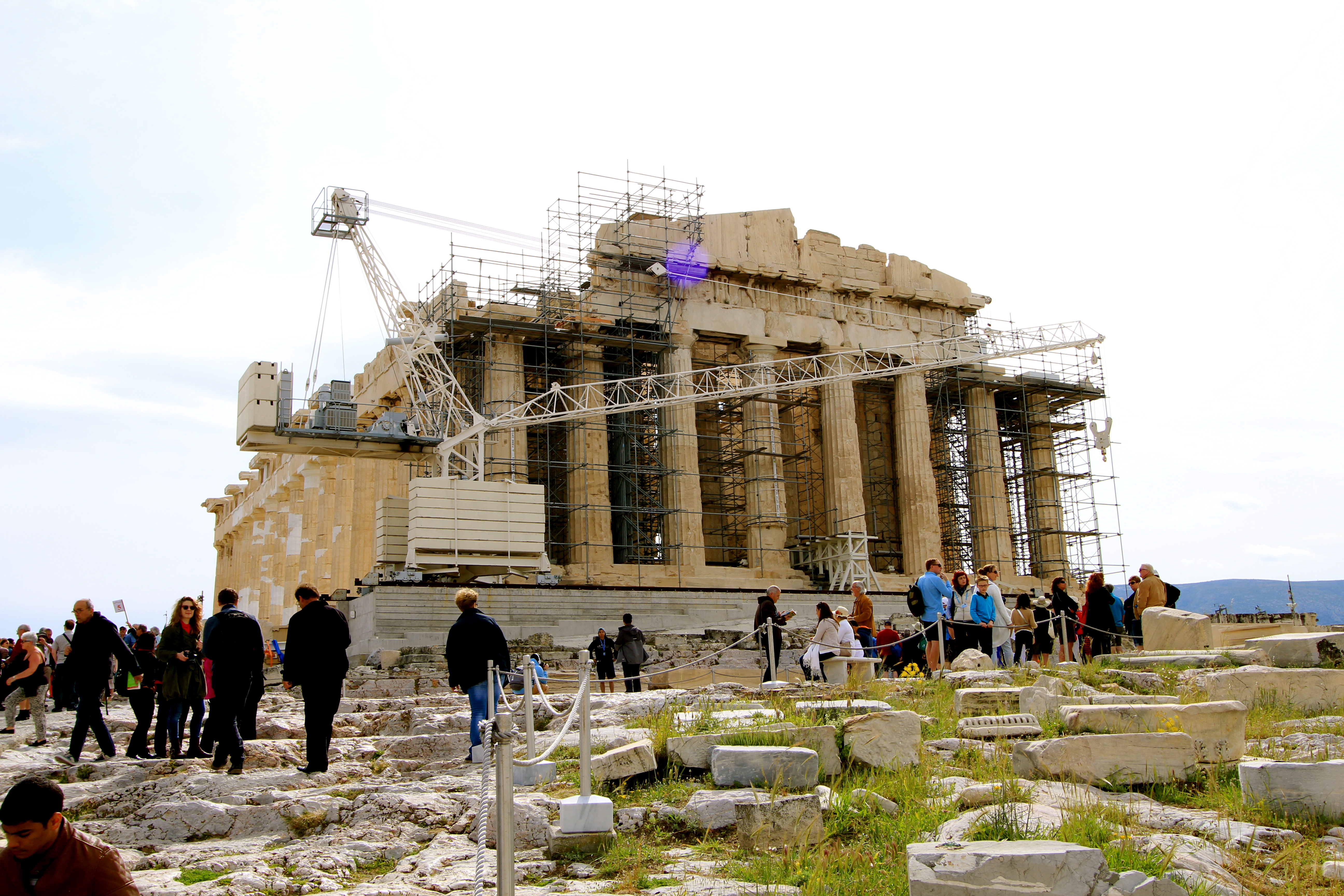 IMG_0205This once was a entirely white marble structure. In the 1300s, the Ottomans had conquered much of Greece, and they used the Parthenon as an storage area for gun powder. The was a large explosion that damaged the roof of the building.