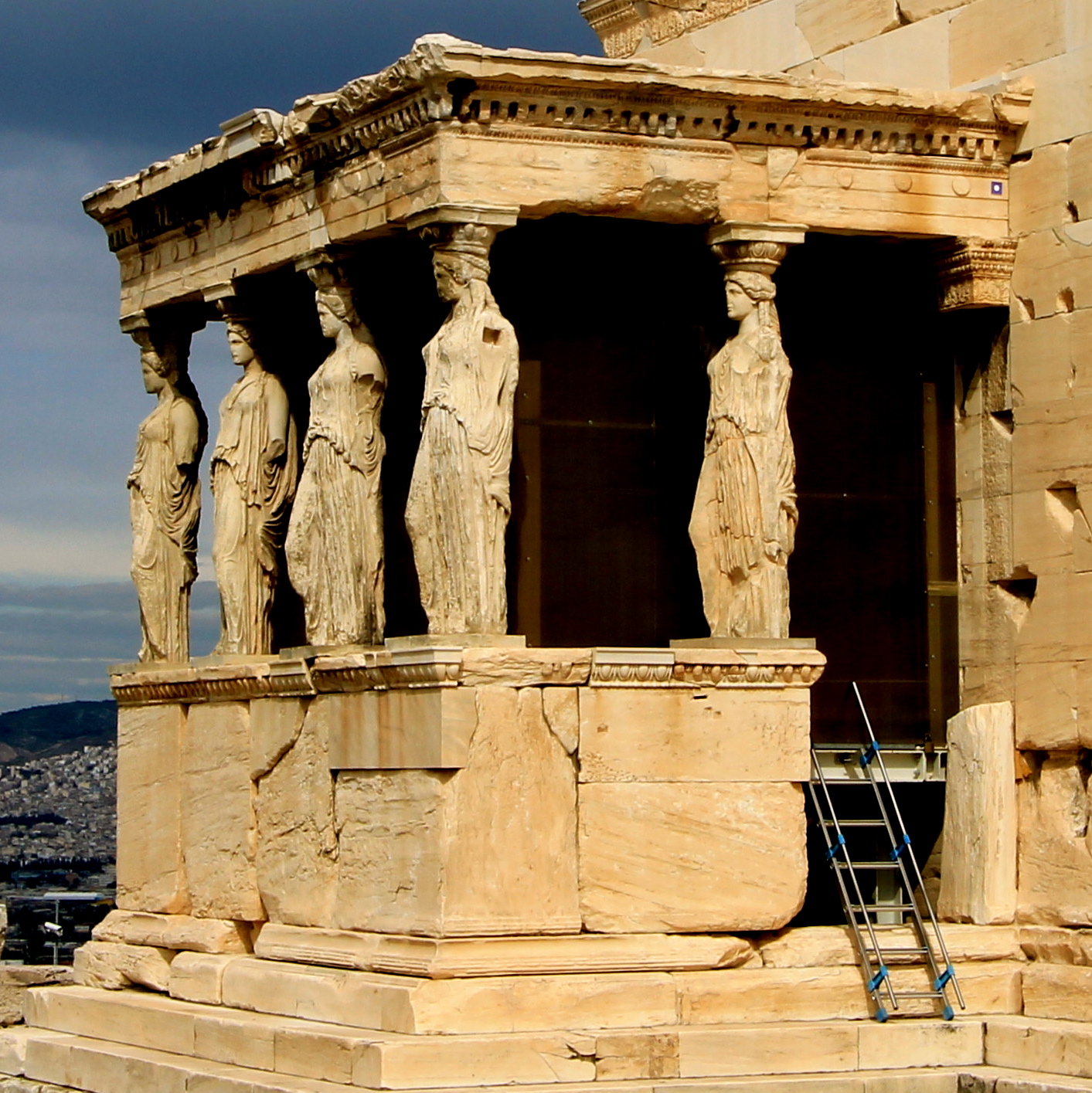 IMG_0215From an architecture standpoint at The Erechtheum is the porch of the maidens, with their heads supporting the roof of the structure.