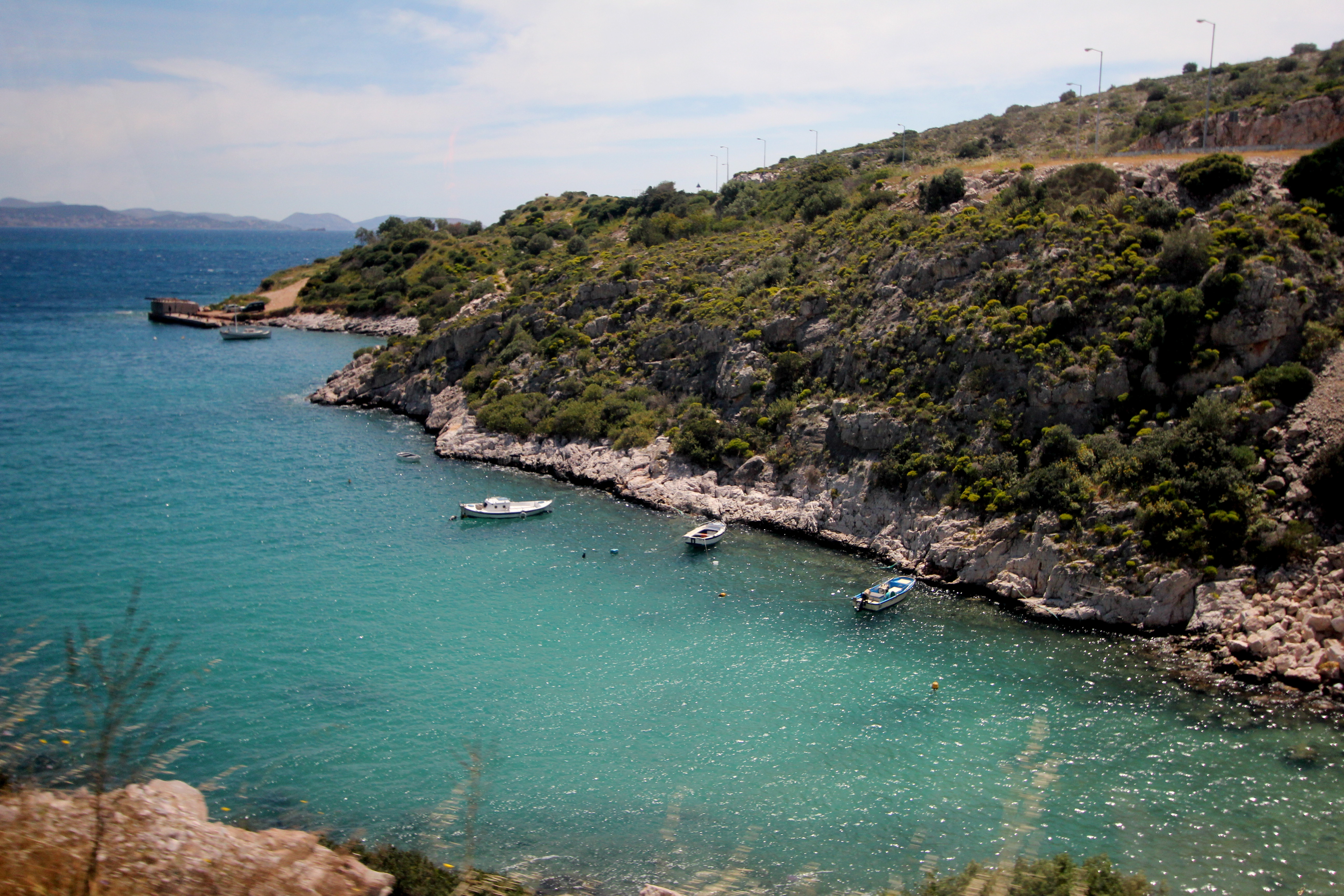 IMG_0259 IMG_0254We then boarded our bus, and drove an hour south down the Cape of Sounion, which is the most south eastern part of mainland Europe.  The drive is very similar to driving through Big Sur, California — just the mountains are not as high.