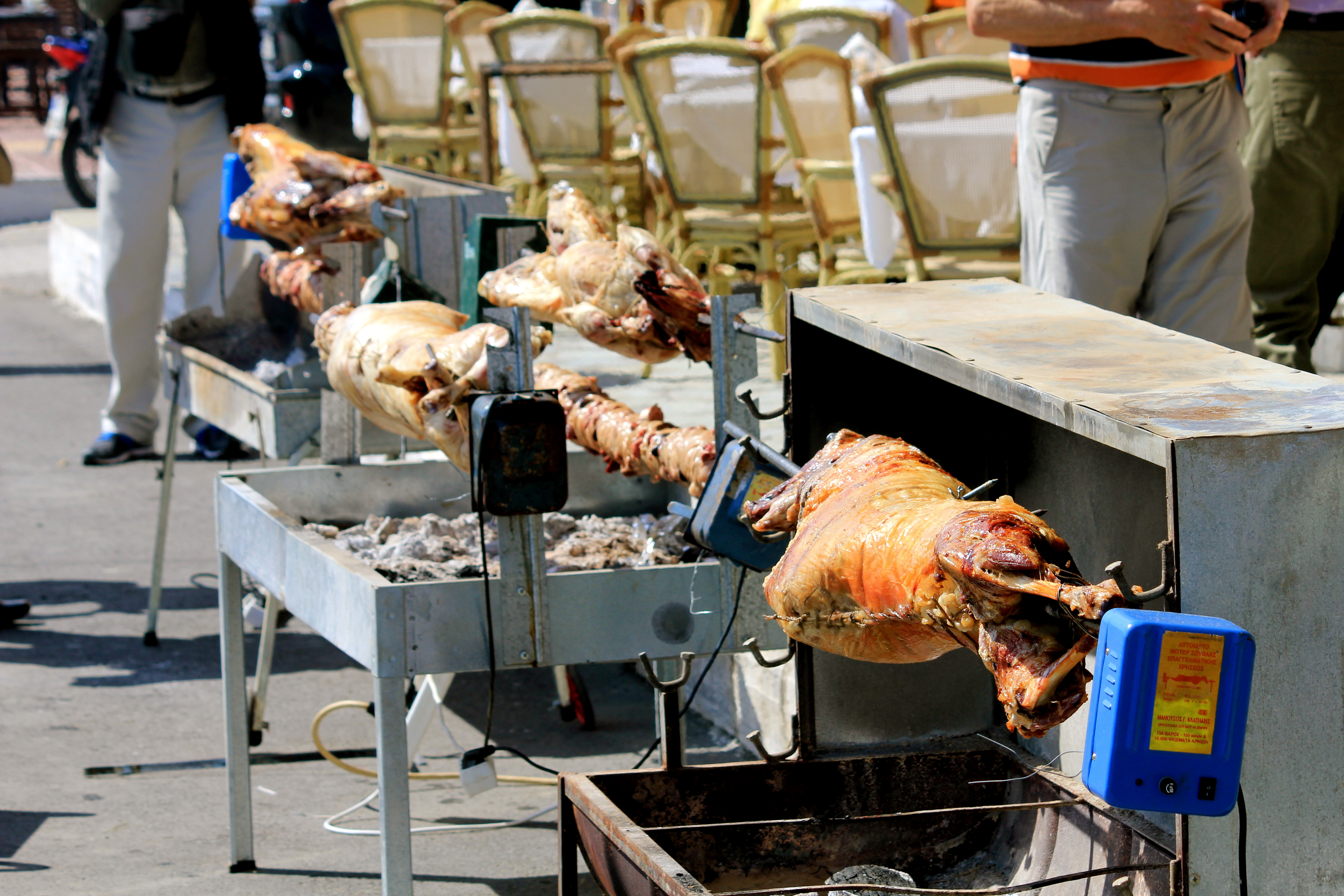 Fresh, cooked lamb on the spit. I am not posting the pix, but let’s just say….it is the ENTIRE lamb turning. Even though it was a little shocking to see, it smelled so good.