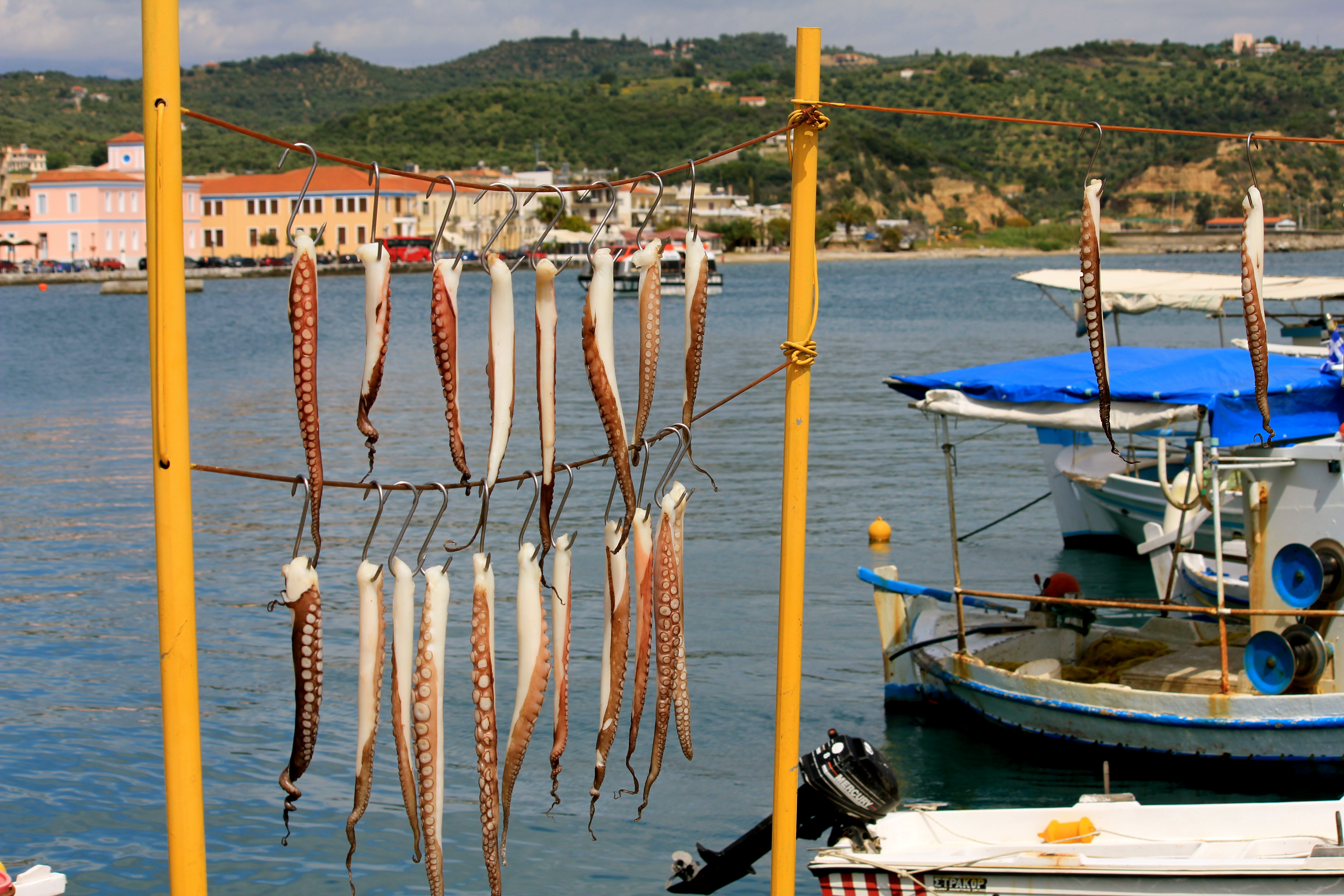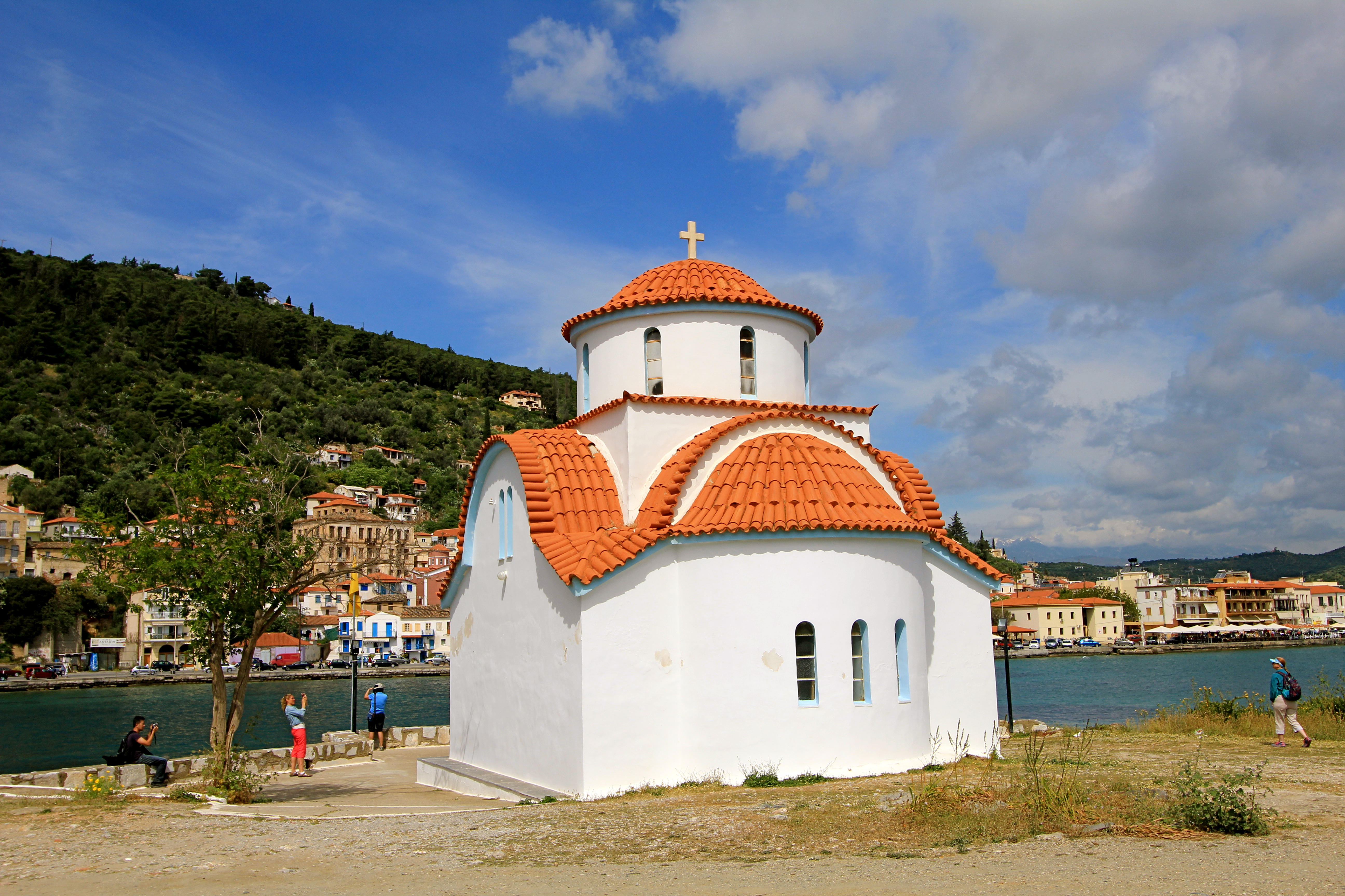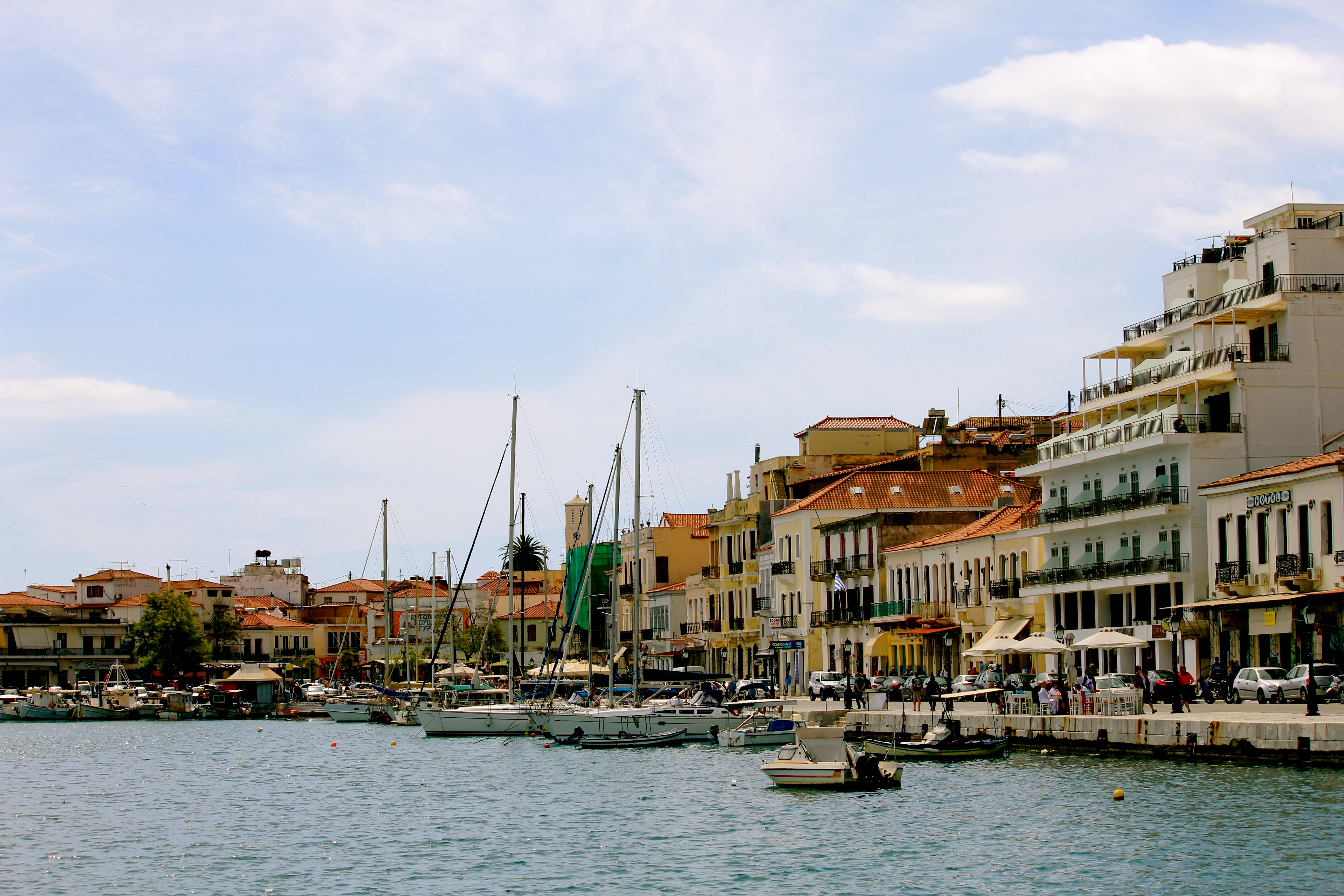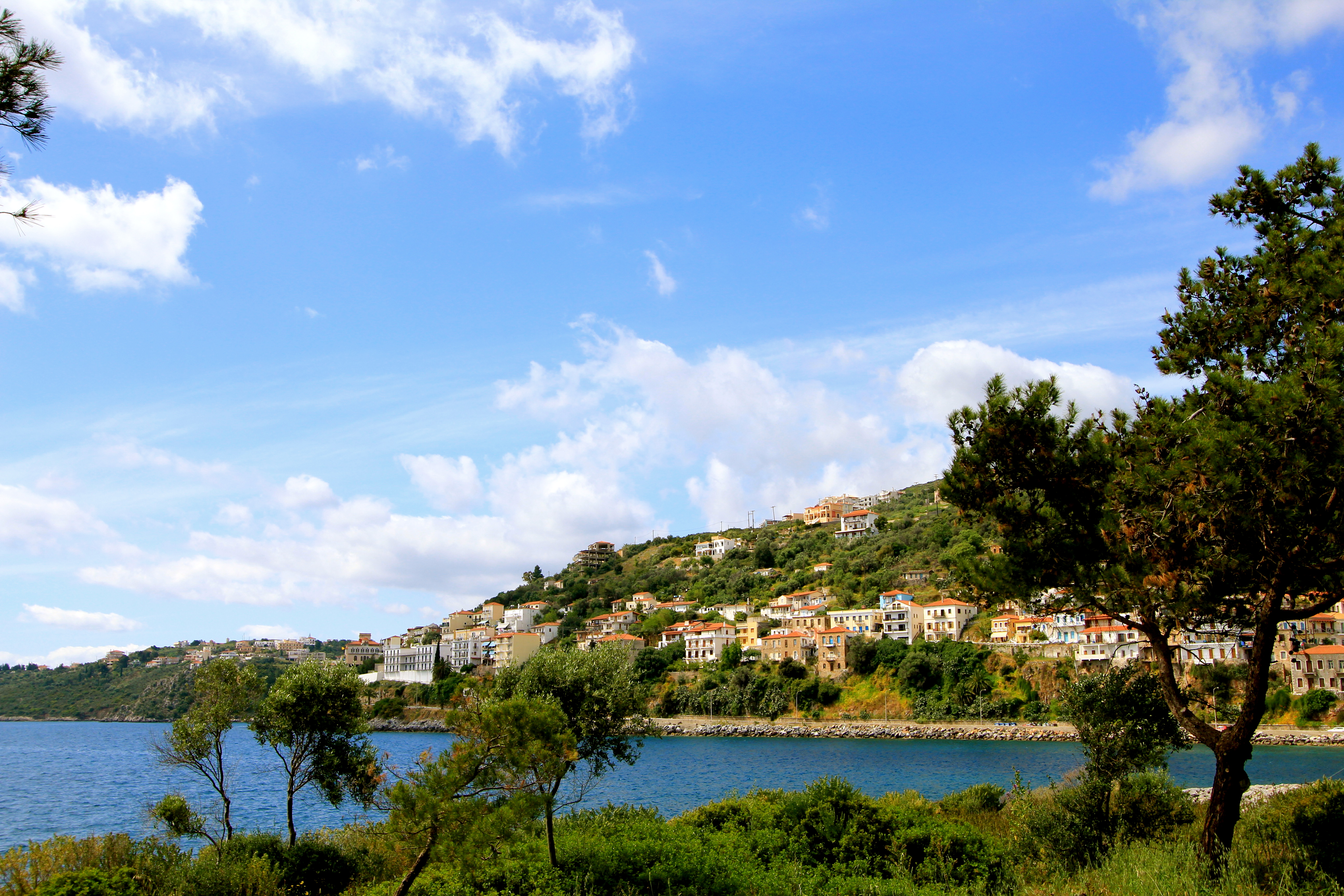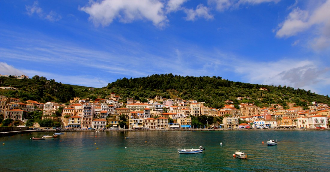 During our cruise in April, we spent our Easter Sunday in our next port of call on the cruise in the seaside town of Gytheio, Greece, which was the port fort Greek city-state of Sparta. We did not plan any excursions here, as Amanda stayed on the ship for a spa day. I, however, wanted to see the port town. Our ship anchored in the bay, and we took tender boats into the town. I did not expect anything to be open since it was a holiday, but since this town depends on tourism, many cafes and souvenir stands were open.
