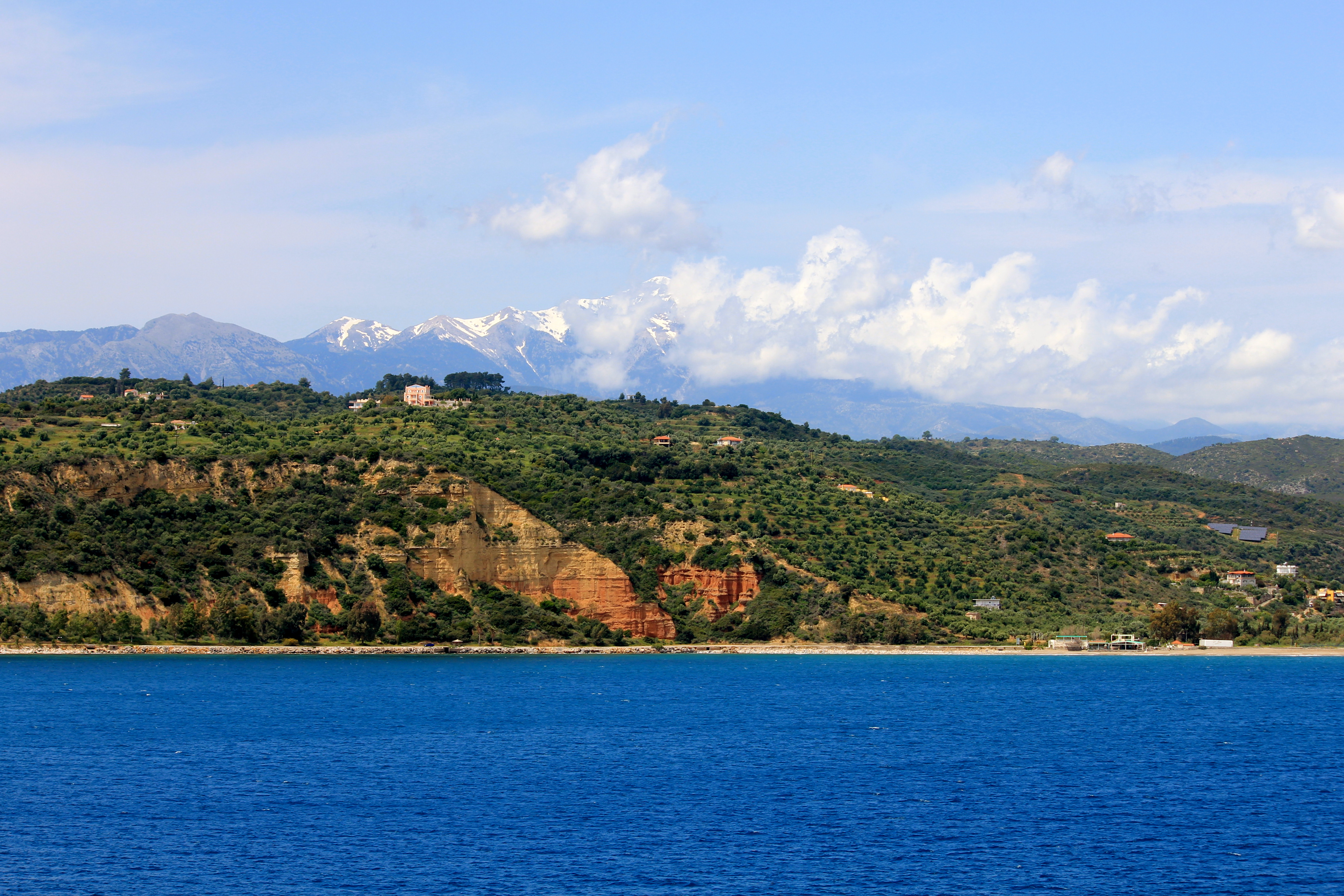 Snow-capped Mt. Koumaros in the background as we left Gytheio