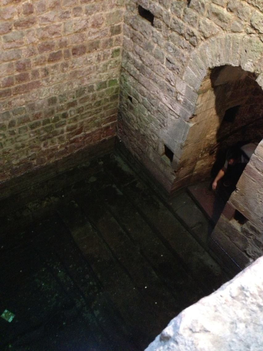 View from the steps of the Cathedral. The cauldron in the middle of the street…in the Middle Ages, the Bishop would fill it with wine for the villagers to drink from