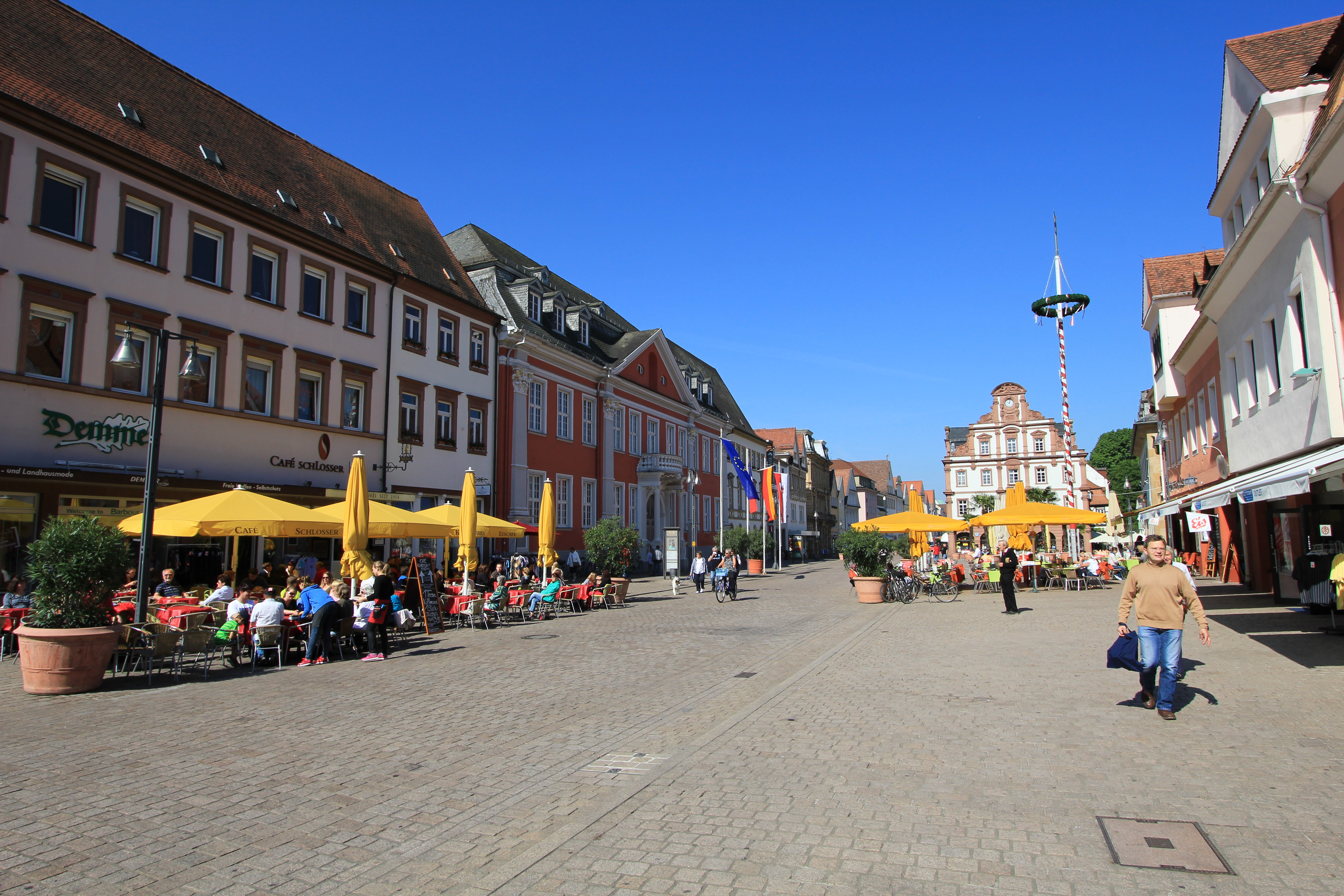 The main street of Speyer has beautifully decorated buildings of shops and cafes that get very busy on Saturday afternoons.
