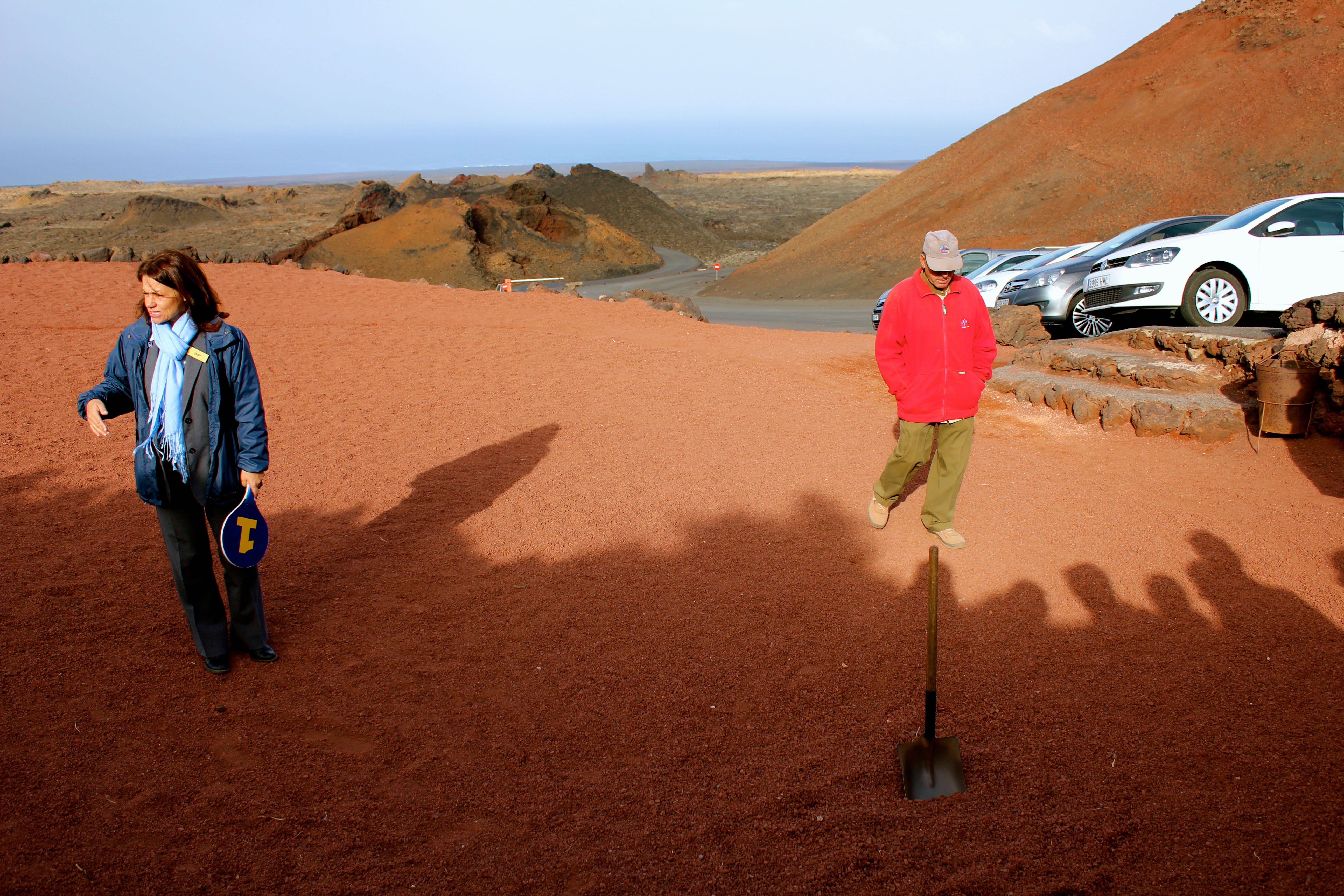 Here at the Timanfaya National Park, we watched demonstrations of how there currently is still volcanic activity happening on the island today. The shovel was used to pick up the rocks so that we could touch them. We could not hold them because they were too hot to hold for a long time.