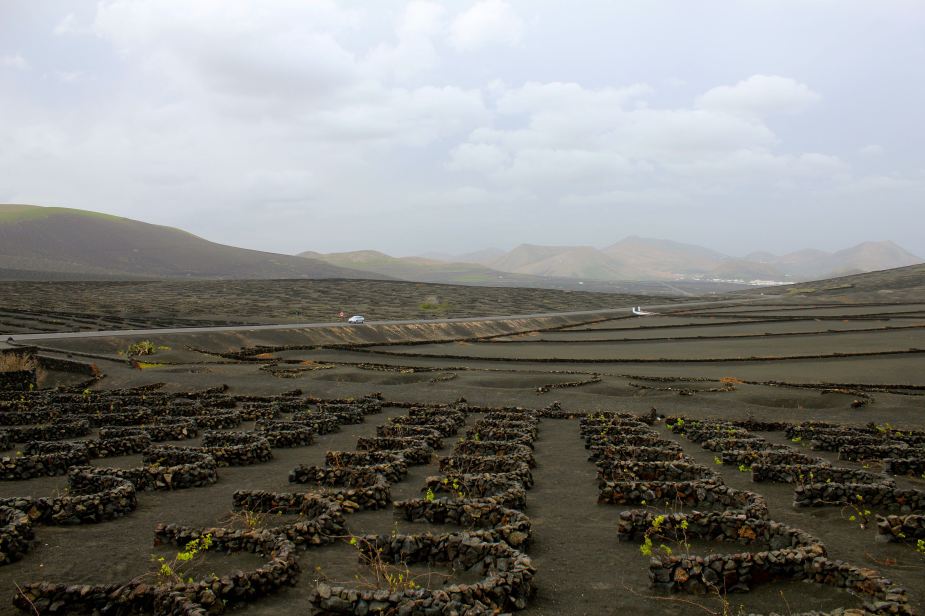 Eventually, we began to leave the rocky part of the island to where the lava more evenly flowed. Here, the soil is very fertile. But, the problem is the island does not see a lot of rain, so it is very dry. A type of grape that does well in these enviornments is planted here and does really well. But, to help the grapes grow, pits are dug about 3 feet deep & 5 feet wide with the grape plants planted in the middle. The pit helps collect morning dew and rain water and stone wall are placed above to protect the plants from the very strong winds that can blow.