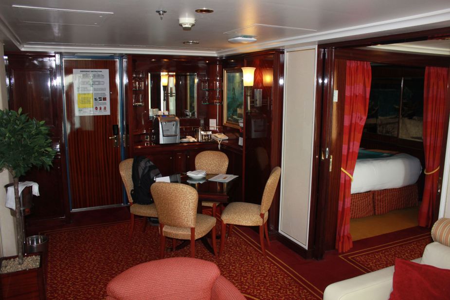 From the living room area looking to the bar seating area and into the bedroom