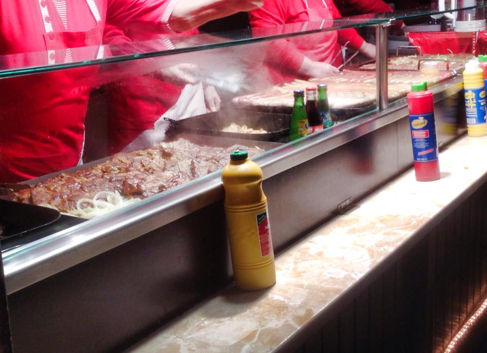 Easy to find a walk up stand selling various types of sausages (wurst)