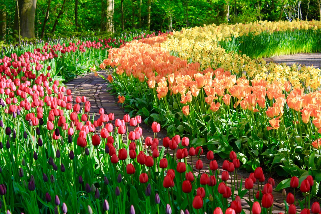 7 million flowers over 500 acres. 800 varieties of tulips alone. 500 local flower growers come to Keukenhof each year to plant their flowers in September-October under the direction of the master gardener/designer for the 8 week show in April to May.