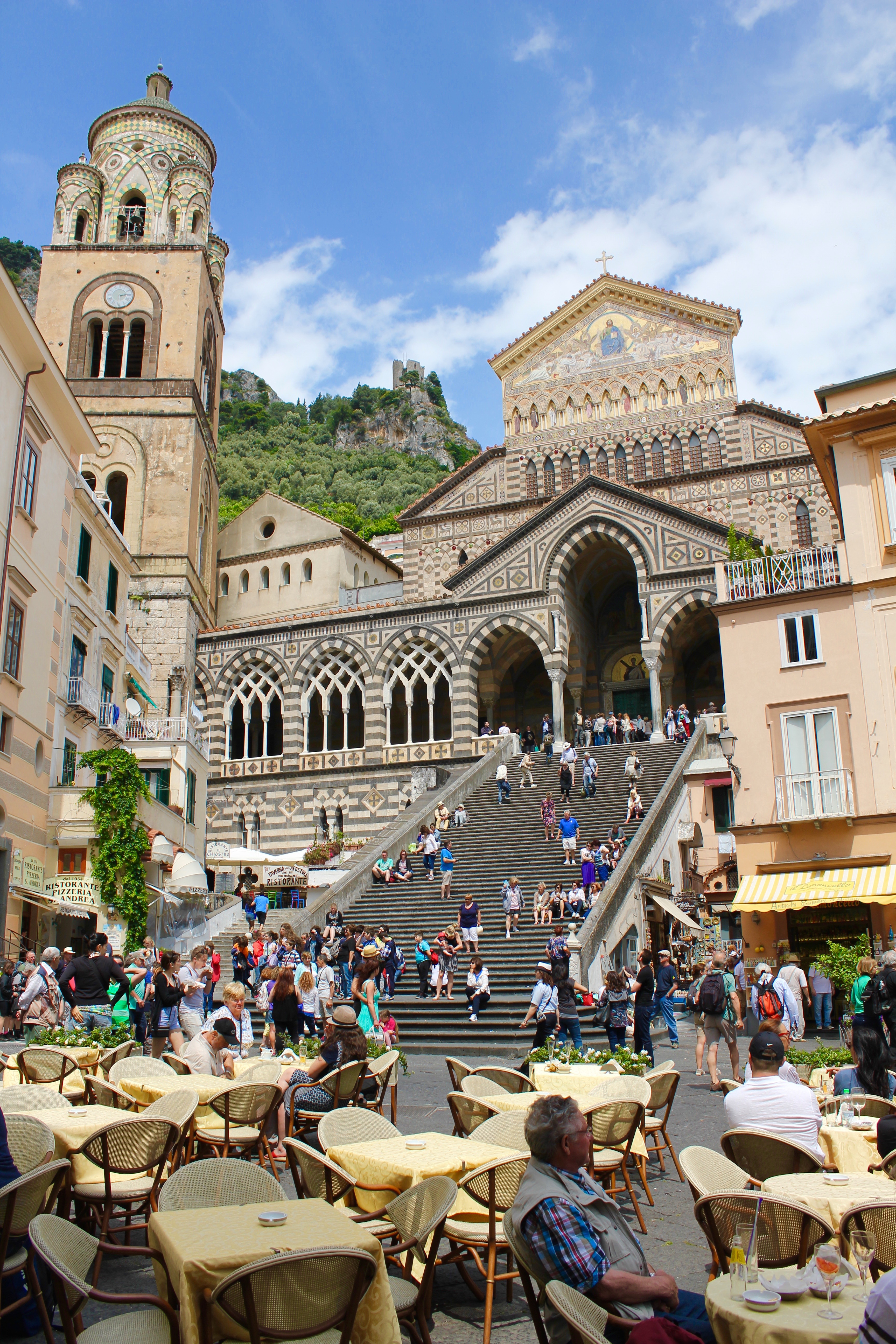 We finally reached the village of Amalfi and had about an hour to explore the village before meeting our boat for the next leg of our adventure. We walked the village streets, saw a cathedral wedged into a mountainside, and ate some delicious gelato before leaving.
