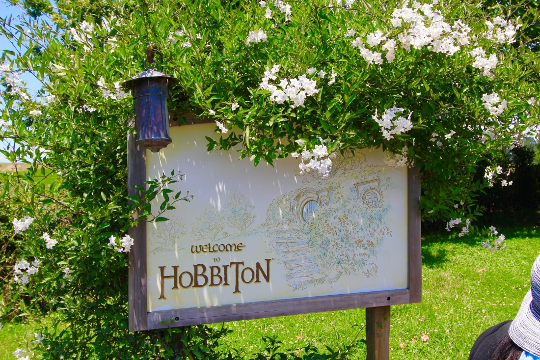 Eventually, a sign appears pointing the way to the “Hobbiton Movie Set” as the small two-lane road twists its way between the green grass hills turning into an even smaller two-lane road ahead.