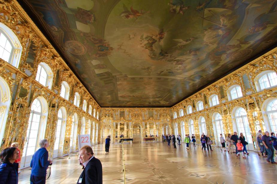 The palace has seen many expansions since its beginnings as Catherine’s descendants reigned Russia. Many rooms have their own themes like the Chinese Room with its porcelain decor or the Amber Room with wall panels and floor inlaid with brown amber. These rooms are all connected by the Great Hall within the palace that seems to stretch on-and-on with its golden trimmed entranceways — each room guarded my older Russian women (and I’m surely dozens of security cameras, too).