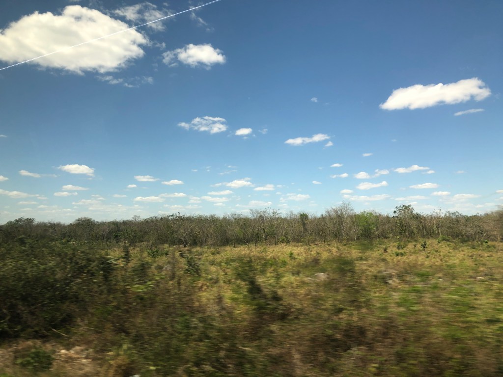Our ship docked in Cozumel, Mexico, which itself is an island off the eastern coast of the Mexican Yucatan Penisula. We boarded a ferry for a 45-minute ride to the resort town of Playa del Carmen, Mexico and met our tour bus for the 90-minute ride into the north-central part of the Yucatan. Mile-after-mile on a mostly straight 4-lane highway we passed through what felt like, and was in reality, the middle of nowhere.