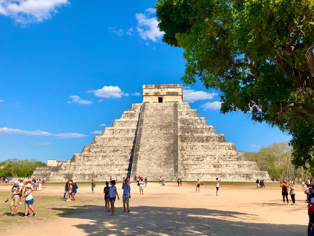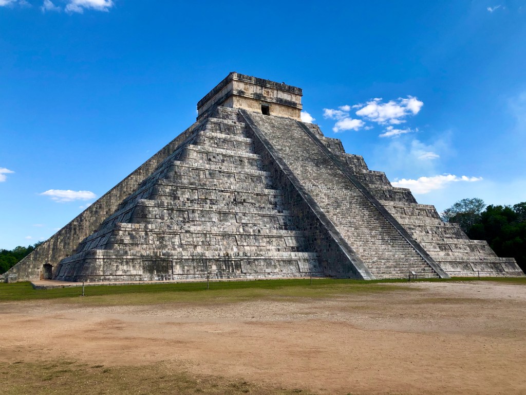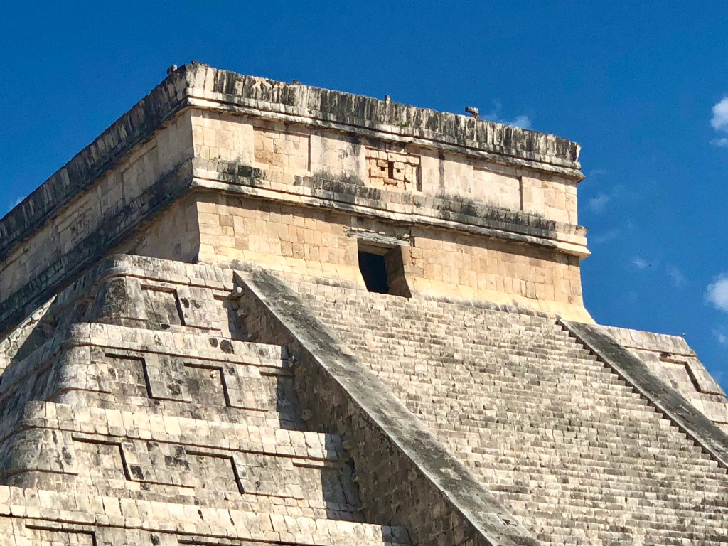 The name is spelled Chichén Itzá in Spanish and translates to “at the mouth of the well of the water” – this area of the Yucatan is fairly dry, however, rivers with tributaries run underneath the ground in the area causing many sink holes and caves in the region.